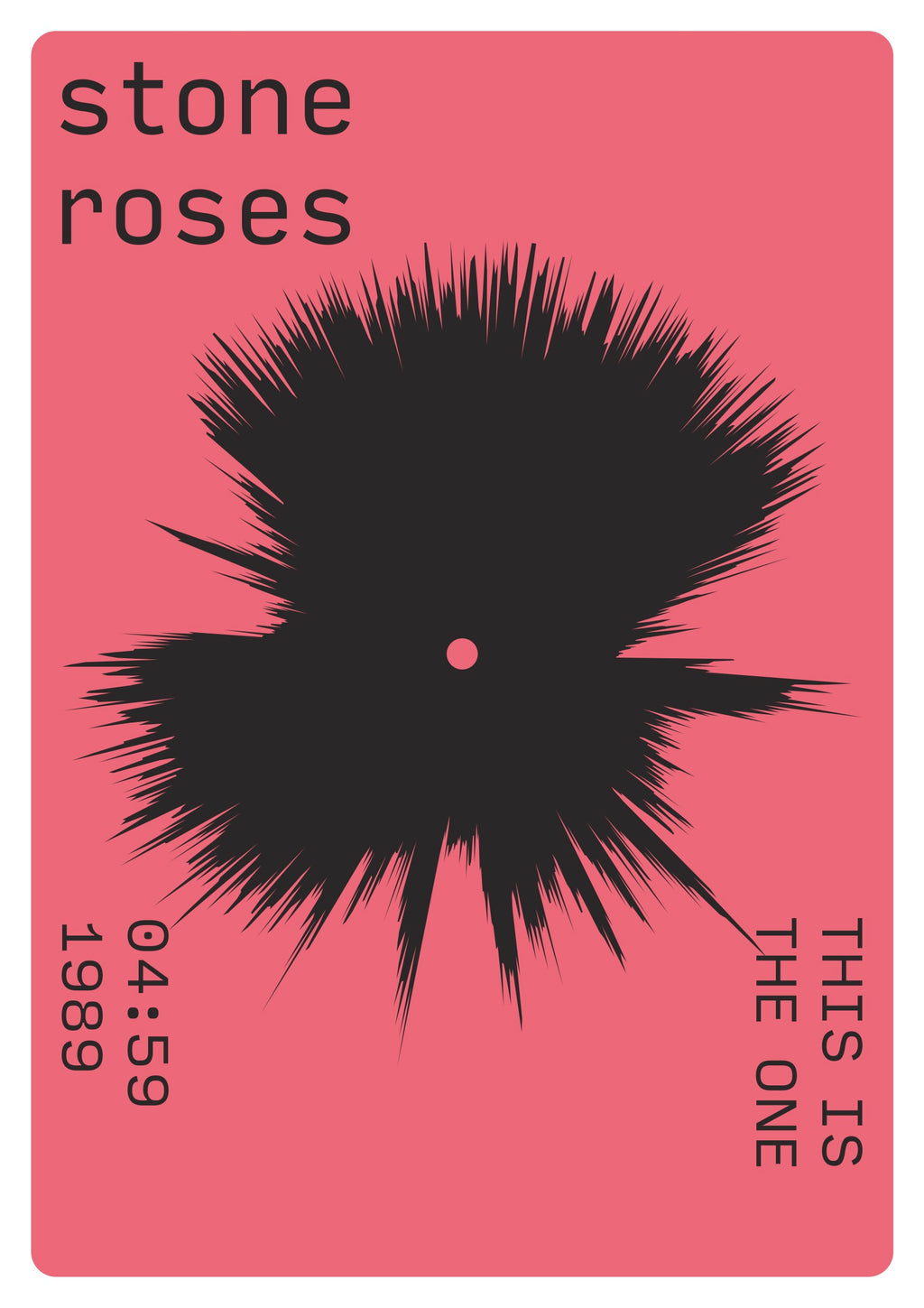 Matt Booth is a multi-disciplinary designer who produces a rich mix of work for screen, print, device and product. Matt has created 6 pieces which all work together based on sound data from iconic Manchester songs, with each piece containing the artist, track name, duration and release date.